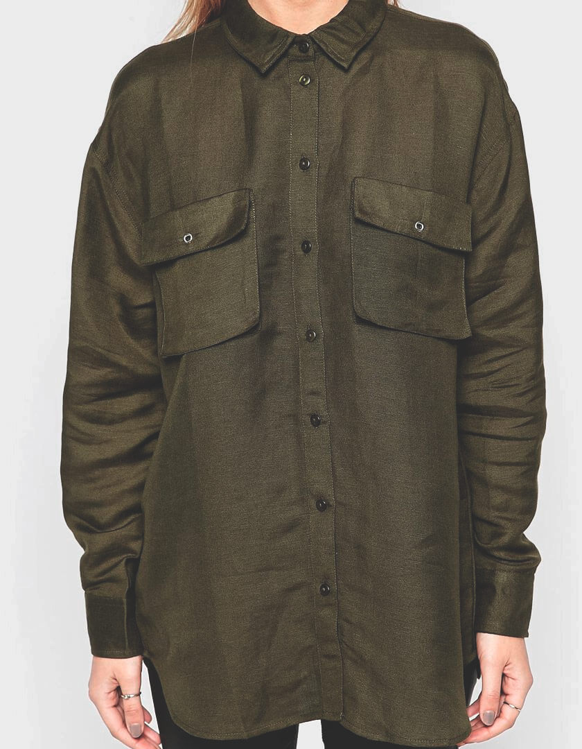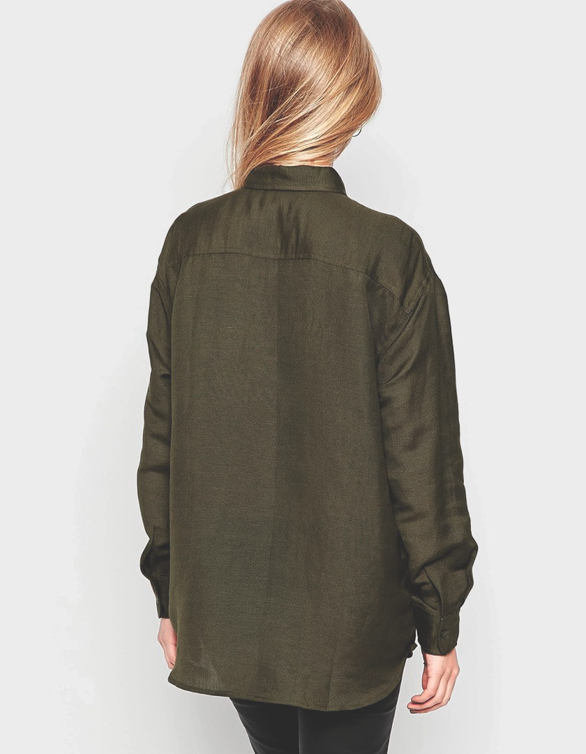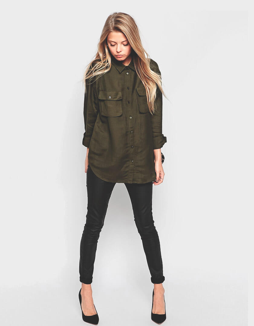 Military-inspired ‘Pierce’ top is cut for a relaxed fit from army-green cotton-twill. The curved hem and split sides make it perfect for layering, too. We think it looks cool with this season’s must-have tan suede accessories.