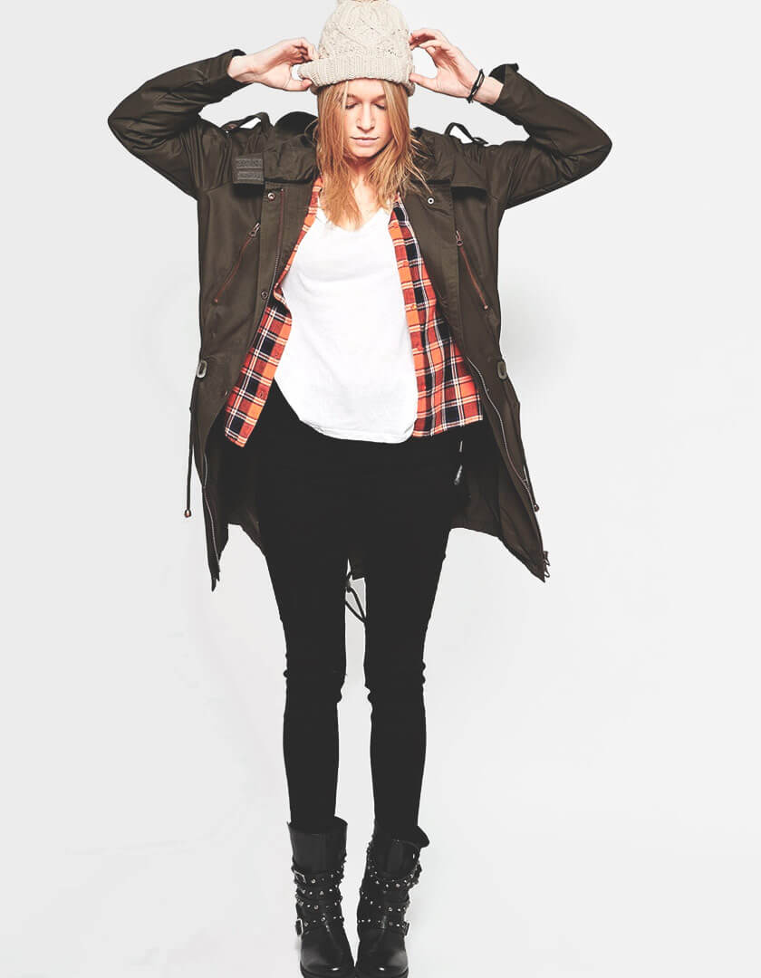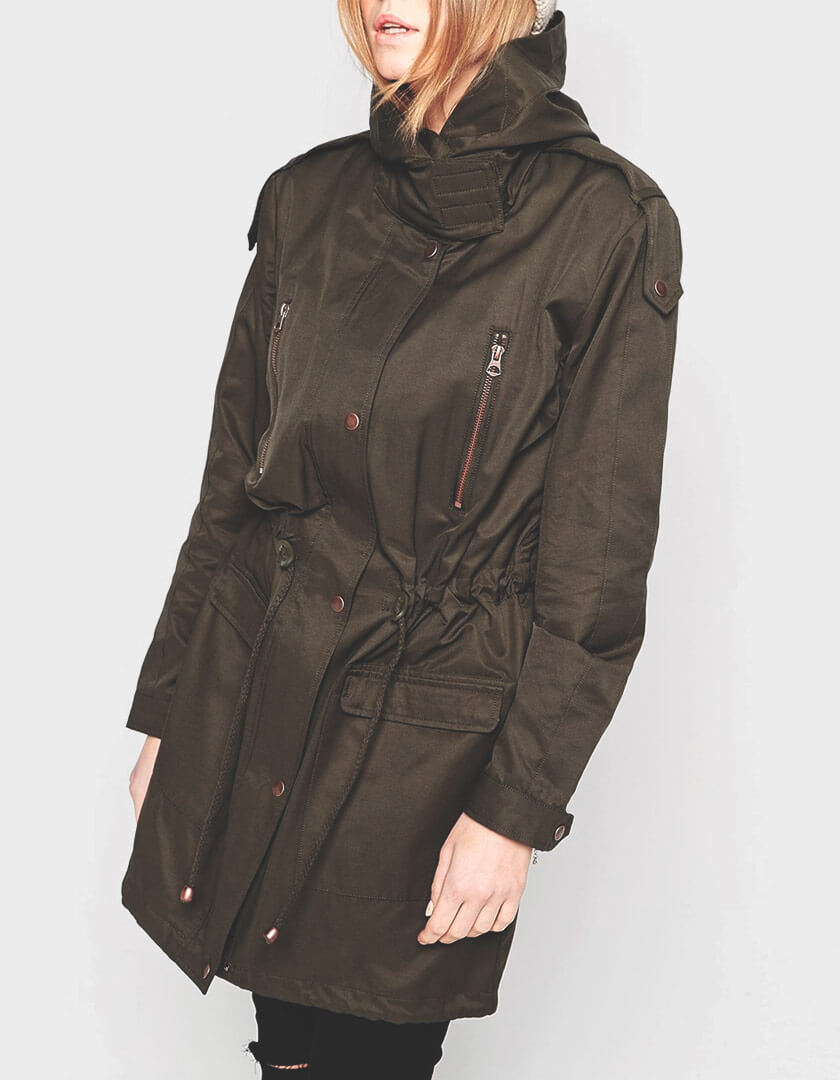 Parka from the casual collection with incorporated-visor hood. Epaulettes, zip and button fastening through front, twin zip pockets on the chest. Twin side flap pockets, zipped cuffs and slit on the back of the hem. Inner drawstring waist and partial inner lining.